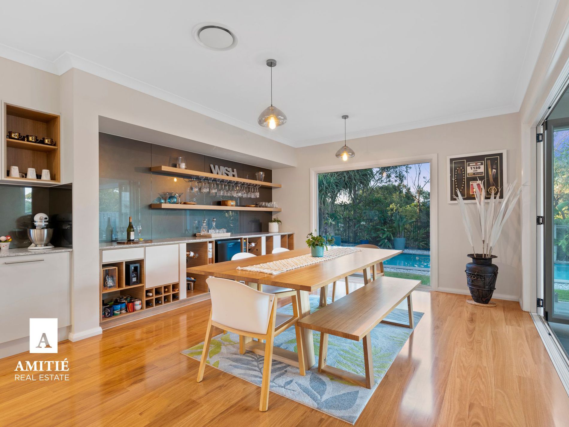 Love entertaining? Then this home and the outdoor space is definitely for you. With a spacious kitchen overlooking indoor and outdoor living areas which exudes style and class – featuring Granite benches through the kitchen, butlers pantry and bar area, quality SMEG appliances including a large 900mm oven and 900mm 5 burner gas cooktop, range hood, dishwasher, this home is ready for the entertainer.
