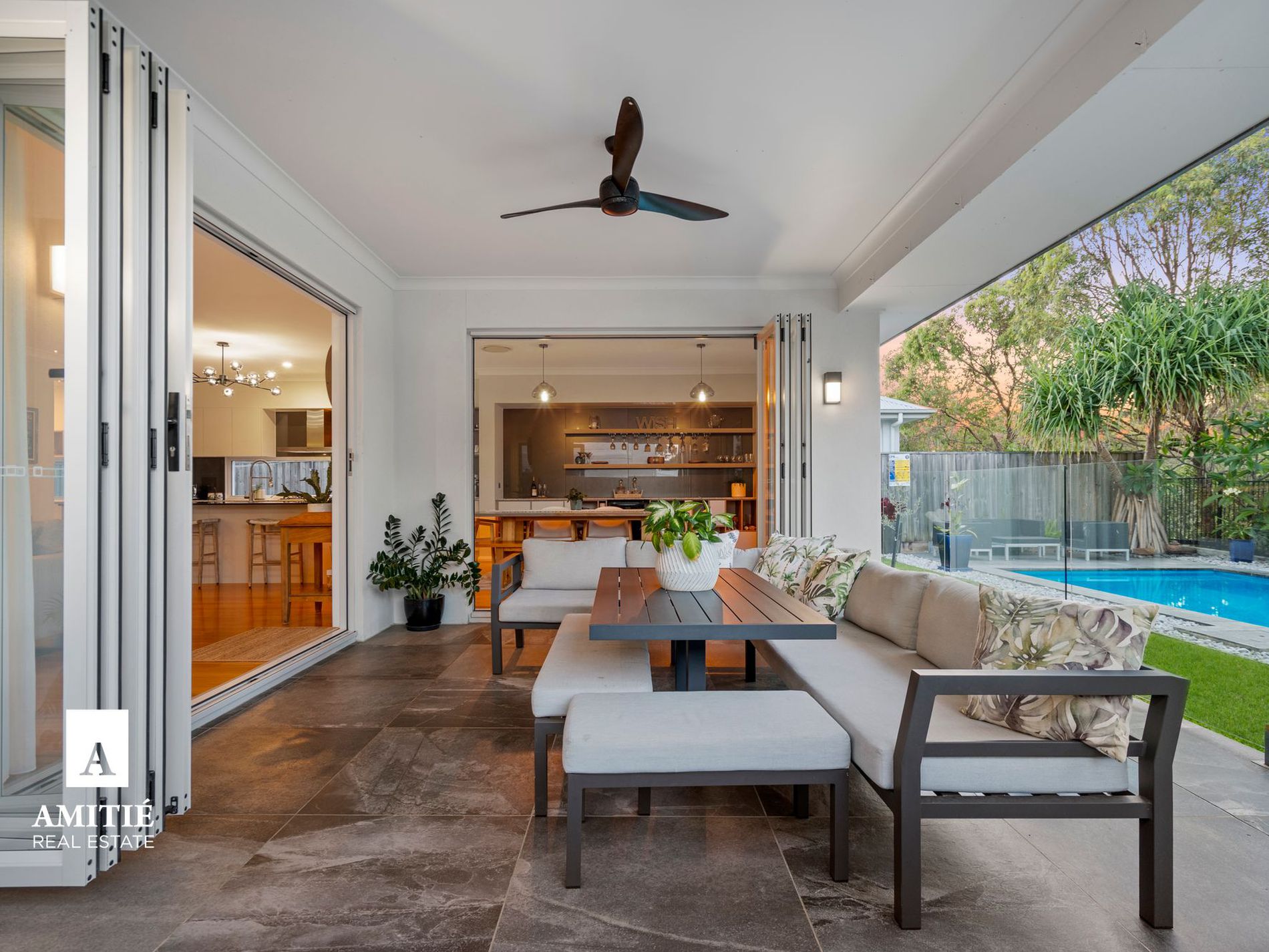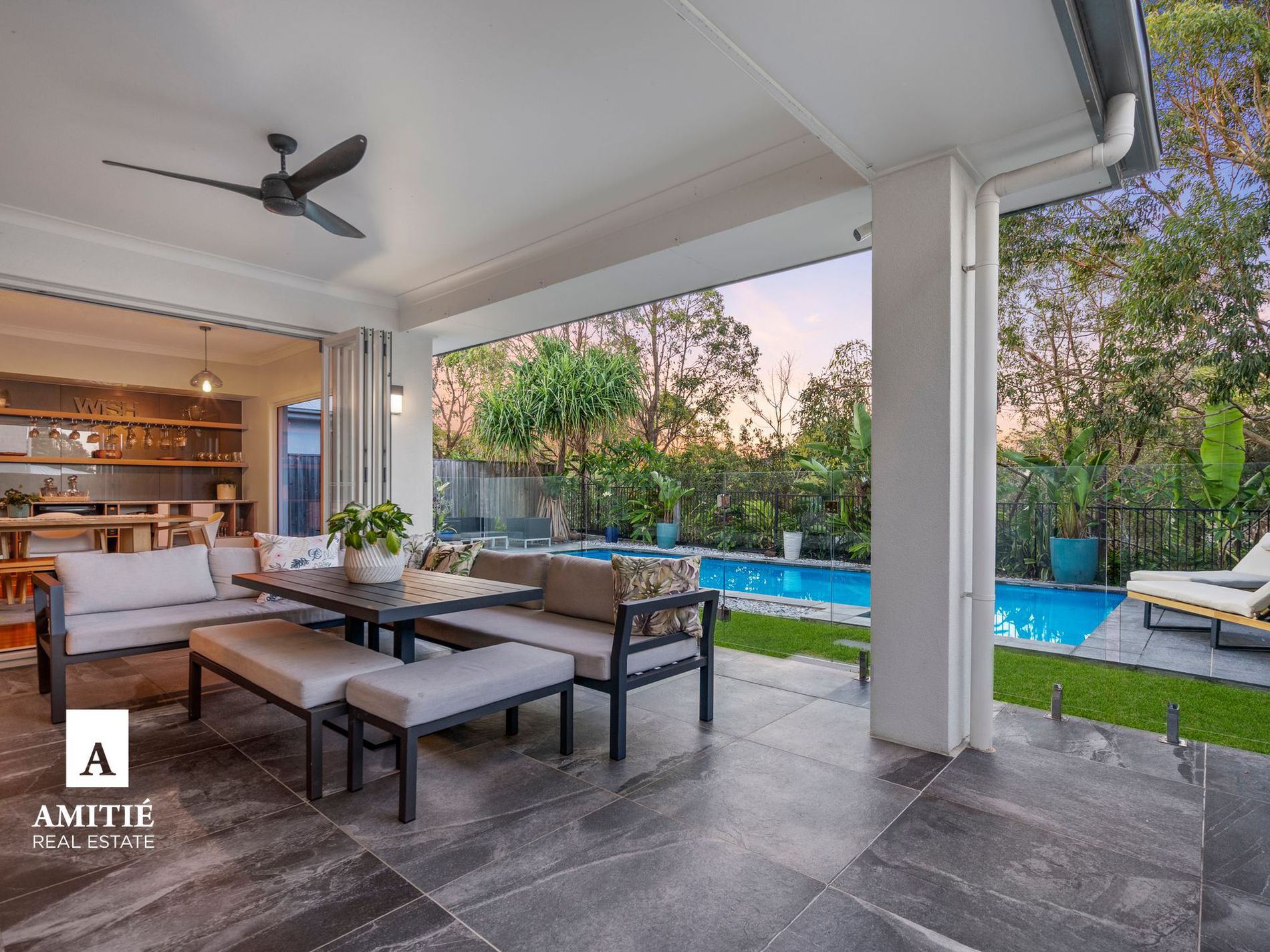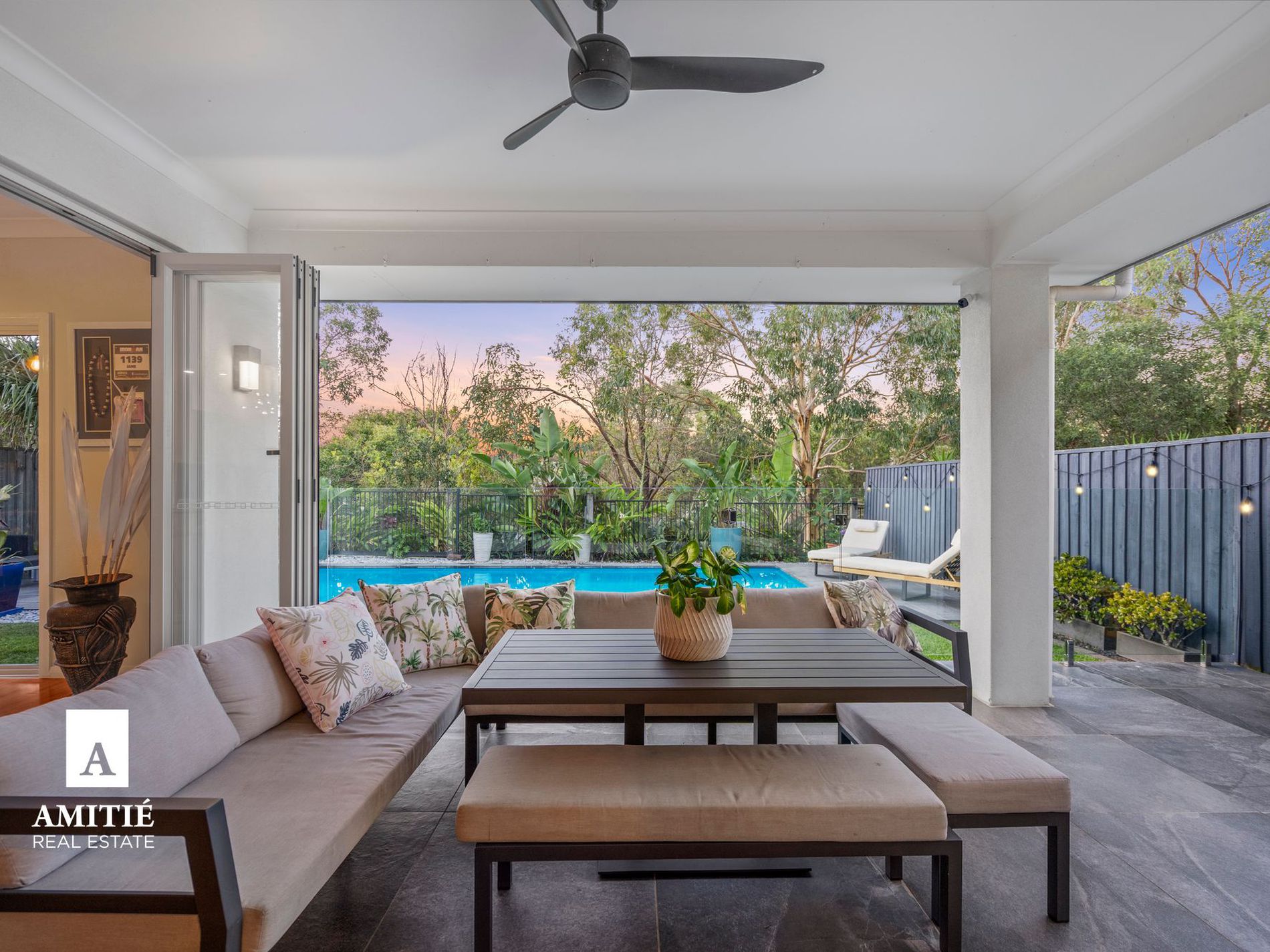 - Concertina bi-fold doors leading onto the entertainment area, set amidst the low maintenance tropical landscaped surroundings which seamlessly combine indoor and outdoor living.