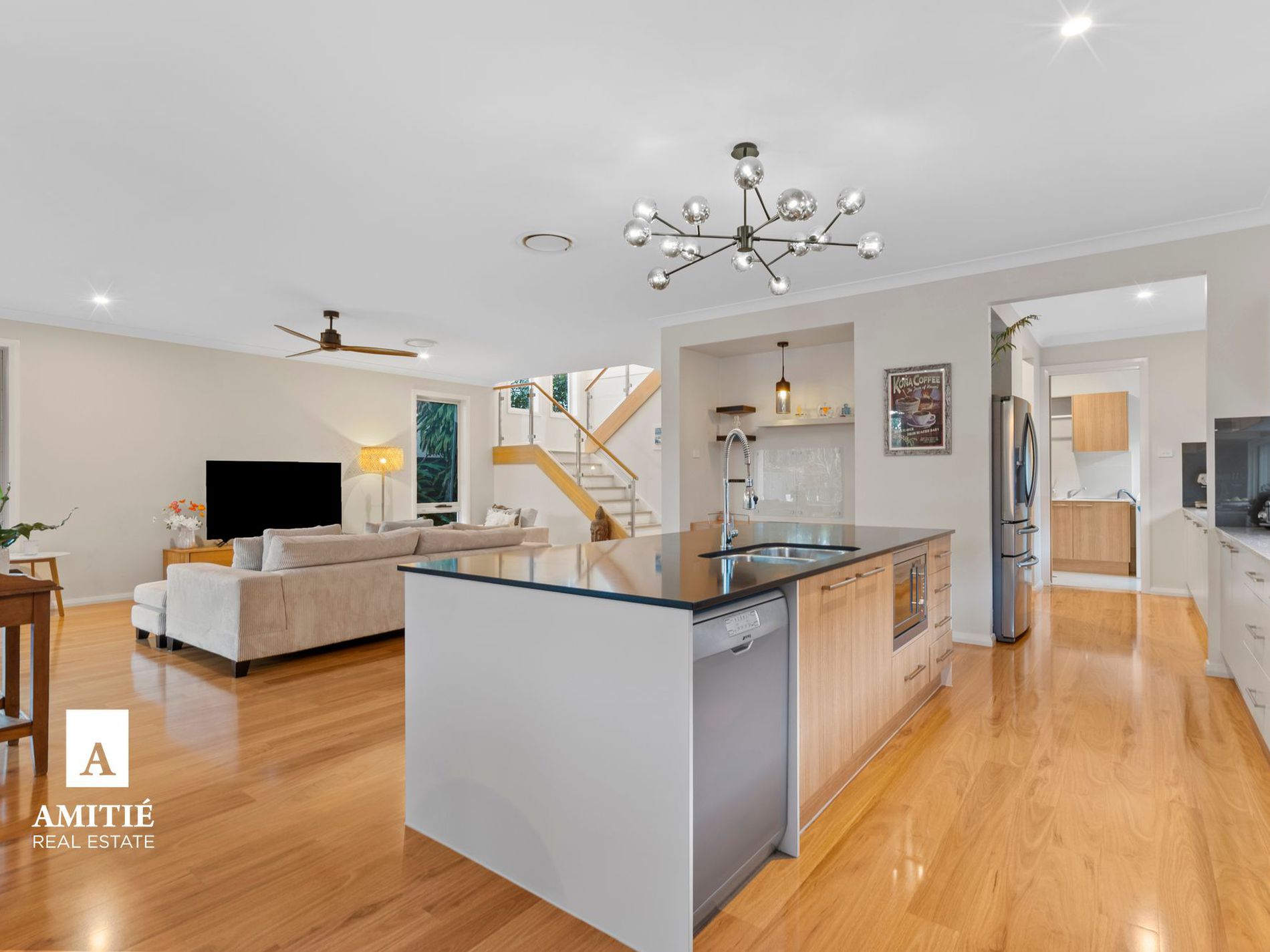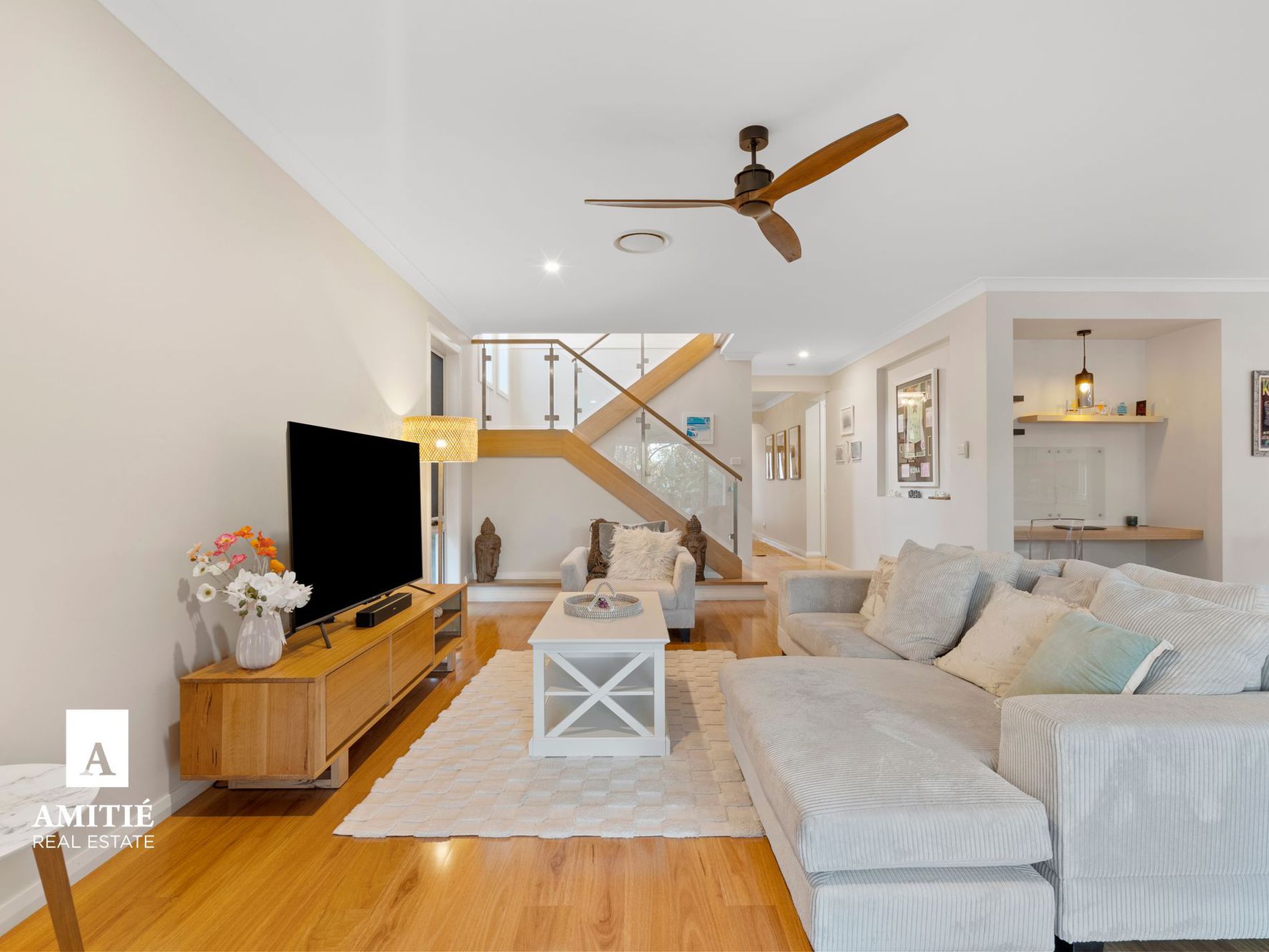 - Oversized open plan living with fan.